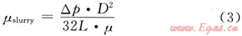 假設(shè)在本實(shí)驗(yàn)的流動(dòng)中,天然氣水合物顆粒是均勻分布的,并且流動(dòng)處于層流區(qū)域,通過(guò)觀察實(shí)驗(yàn)過(guò)程中流量和所測(cè)得的壓降,就可以利用圓管層流里的管道壁面剪切力與壓降的關(guān)系求出天然氣水合物漿液的表觀黏度,為:
