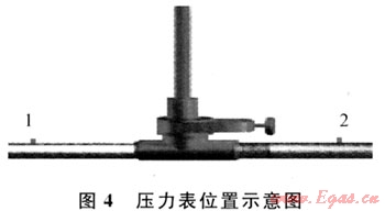 具體試驗步驟:選擇空曠場地,搭建試驗平臺;剝防腐層,除去管線表面油污、底漆;測量管線橢圓度,保證封堵點位置橢圓度不超過1%;測量管線壁厚,盡量避開嚴重腐蝕區(qū)域;選擇合適點,焊接封堵三通、注氮短節(jié)、平衡短節(jié)以及管線封頭;對焊道進行滲透探傷檢查;安裝夾板閥、球閥,壓力表位置安裝示意圖見圖4,從口2注入氮氣,壓力為2.0MPa;安裝1200H開孔機和T101型開孔機,開DN600mm封堵孔和2號平衡孔;調試、安裝封堵器,進行封堵操作,封堵操作時先壓力平衡后方可進行下一步的操作;經測量和計算,封堵尺寸下到位后,打開2號球閥放空氣體;使用火焰切割設備,切開2號球閥一側封頭,向管道內安裝氣囊并給氣囊充氣;觀察1號位置處短節(jié)上的壓力表看壓力是否變化,用肥皂水噴氣囊貼管內壁處,若壓力表無變化,氣囊貼管壁處無氣泡則封堵成功,否則封堵視為不成功,此時應分析封堵不成功的原因,并有針對性地提出解決問題的措施,直到封堵成功為止。封堵試驗完成后,對1號位置處進行泄壓;拆卸封堵設備和焊接在試驗管道上的三通等機具、器材,并將它們擺放就位。