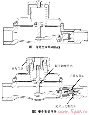 這種帶有安全保護功能的家用安全型調(diào)壓器與現(xiàn)有的戶用燃氣調(diào)壓器技術(shù)相比,新研發(fā)的安全型調(diào)壓器具有結(jié)構(gòu)簡單合理、使用安裝方便、制作成本低廉、安全性能可靠等優(yōu)點: