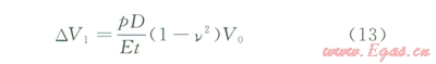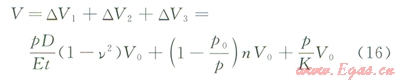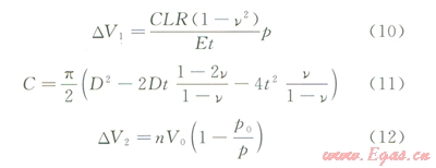 實(shí)踐中,對于式(10),由于徑向?yàn)楣艿辣诤穹较?,對于大口徑薄壁管,擘厚變化引起的管道體積變化較小,以規(guī)格為l219×22mm規(guī)格的管道為例,經(jīng)測算,僅為DVl的5%,若考慮空氣、水的壓縮性,該比例還將大大降低。因此,本文將該壁厚變化引起的體積變化忽略,得到DVl表達(dá)式為: