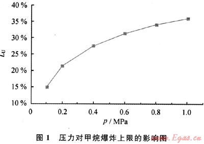 壓力對甲烷爆炸上限的影響顯著,對爆炸下限影響較小。