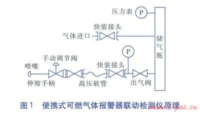 便攜式可燃?xì)怏w報警器聯(lián)動檢測儀是一種用于檢測可燃?xì)怏w報警器工作狀態(tài)的裝置,它可以用指定濃度的可燃?xì)怏w(以下簡稱標(biāo)準(zhǔn)氣體)對報警器進(jìn)行檢測,這樣既能夠測試報警器的工作狀態(tài)是否正常,同時還不對傳感器等靈敏部件造成損壞,其原理見圖l。