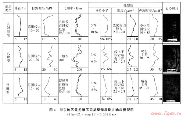 1) 川東地區(qū)黃龍組碳酸鹽巖可劃分為孔洞縫型、孔隙型和裂縫型3種儲層類型,不同的儲層類型具有不同的測井響應(yīng)特征,其中孔洞縫型是最好的儲層類型,孔隙型是最發(fā)育的儲層類型。