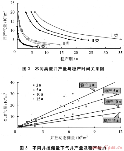 綜合分析徐深氣田試采井的地層系數(shù)、穩(wěn)定產(chǎn)能、單位壓降采氣量等地質(zhì)和動(dòng)態(tài)特征,對(duì)系統(tǒng)試采的井進(jìn)行了分類評(píng)價(jià)。綜合單井試采結(jié)果,結(jié)合不穩(wěn)定試井以及數(shù)值試井方法,建立了開(kāi)發(fā)早期單井合理產(chǎn)量與穩(wěn)產(chǎn)能力關(guān)系圖版,確定氣井初期產(chǎn)能、落實(shí)合理產(chǎn)量(圖2、3)。