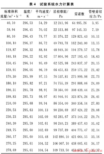 在進行減阻劑測試之前,首先要進行空白管道的水力分析??諝庥蓧嚎s機壓縮到0.8MPa后進入測試管道,保證壓縮機出口壓力pi不變,標準體積流量Qg調(diào)節(jié)范圍為40~280m3/h,經(jīng)測量、計算得到一組數(shù)據(jù)如表4所示。