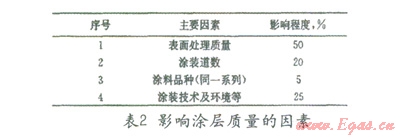 表面處理的好壞對涂層質(zhì)量影響很大,有學(xué)者研究過影響涂層質(zhì)量和壽命的各種因素,結(jié)果如表5所示[1],顯然表面處理的質(zhì)量是對涂裝質(zhì)量影響最大的因素。在海管節(jié)點的防腐施工中表面處理也非常關(guān)鍵,為了保證防腐效果必須對鋼表面進行噴砂處理,達NSa2.5級以上。