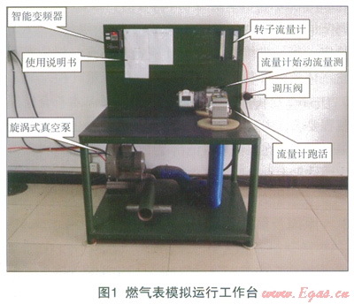 為此,工作人員提出了自行設(shè)計制造燃氣表模擬運行工作臺的方案,工作臺南旋渦式真空泵、智能變頻器、轉(zhuǎn)子流量計、調(diào)壓閥、硅膠墊及不同口徑氣管等組成,共有兩路氣源:一路來自旋渦式真空泵,流量能達到(0~190)m3/h,;另一路空氣壓縮機,通過減壓閥將0.75MPa的氣壓降到0.05MPa,末端安裝兩個轉(zhuǎn)子流量計,將流量控制在(0.016~0.4)m3。