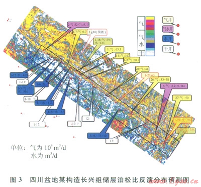 3)建立測井泊松比—地震資料的關(guān)系,并將關(guān)系用于氣水預(yù)測,形成平面預(yù)測成果。