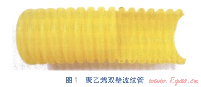 波紋管管材為中密度聚乙烯(MDPE)材料,一般適宜應(yīng)用在低壓管道。有別于普通聚乙烯管,聚乙烯雙壁波紋管見(jiàn)圖1。波紋管采用較薄的雙壁設(shè)計(jì),外壁呈波浪狀,能維持管道形狀,防止穿越彎頭時(shí)管道折疊;內(nèi)壁較平滑,使燃?xì)饬鲃?dòng)時(shí)摩擦造成的壓力損失降至最低。波紋管有相當(dāng)高的柔韌性,大大加強(qiáng)插管時(shí)穿過(guò)彎頭的能力,最多可穿過(guò)2~3個(gè)90°彎頭,每次插管操作可更換10~15m長(zhǎng)的鍍鋅鋼管。使用波紋管修復(fù)取代傳統(tǒng)開(kāi)挖修復(fù),能減少地面開(kāi)挖及對(duì)庭院環(huán)境的破壞,還可降低修復(fù)成本,加快修復(fù)進(jìn)度。