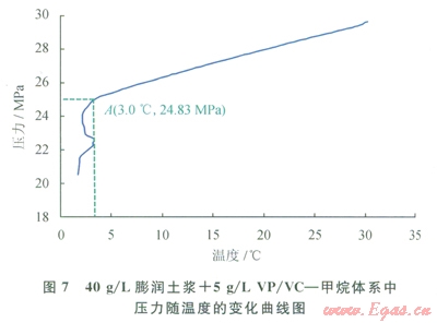 PVP作為第一代天然氣水合物動力學(xué)抑制劑的代表,近年來應(yīng)用較多。圖5、6反映了加入PVP后膨潤土漿中水合物的生成過程。