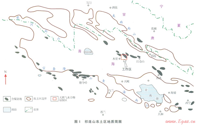 祁連山凍土區(qū)地處青藏高原北緣,多年凍土面積約為l0×104km2[22]。早燕山運動使得祁連山地區(qū)局部拉張,形成一系列條帶狀的山間斷陷盆地,沉積一套侏羅系的河湖沼澤相含煤巖系[23],造成祁連山侏羅紀(jì)小型含煤盆地星羅棋布,組成祁連山含煤盆地群,其中疏勒河 大通河流域就分布有木里、瓦烏寺、雪霍立等11個含煤盆地(圖1)。