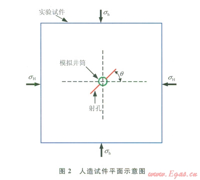 以上情況與定向射孔參數(shù)和目標(biāo)地層性質(zhì)(地應(yīng)狀態(tài)、地層非均勻性等)密切相關(guān)。然而目前對此問研究甚少。筆者采用大型真三軸水力壓裂物理模擬驗(yàn)系統(tǒng)[13]進(jìn)行了室內(nèi)物模實(shí)驗(yàn),研究了定向射孔水壓裂人工水力裂縫的形態(tài)和影響因素,并對完井和裂施工提出了一些工程建議。