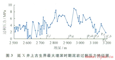 一般來說浮力和水動力是油氣二次運移的主要動力,在常規(guī)油氣二次運移過程中浮力和水動力作用較強。但在鄂爾多斯盆地上古生界由于儲層成巖早期壓實作用和膠結(jié)作用強烈,因而在造成儲層致密化的同時,也導(dǎo)致儲層中的自由水大為減少,從而難以產(chǎn)生較強的浮力和水動力[28]。另一方面,流體南高勢區(qū)向低勢區(qū)運移的原理只適用于連通的水力系統(tǒng),而不適用于多個封隔體之間。泥巖壓實研究表明,盆地上古生界地層在三疊紀(jì)末 白堊紀(jì)發(fā)育“非均衡壓實” [16-17,21,24,26],該區(qū)最大埋深時期(白堊紀(jì))泥巖過剩壓力幅度介于0~10MPa,過剩壓力峰值出現(xiàn)在三疊系劉家溝組—上石盒子組(圖3),在壓力封存箱的上下、側(cè)向高壓泥巖阻隔之間,很難出現(xiàn)區(qū)域運移??梢?,鄂爾多斯盆地上古生界缺乏天然氣大規(guī)模、長距離運移的動力條件。