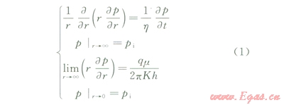 式中r為徑向距離,m;p為地層壓力,MPa;h為導(dǎo)壓系數(shù),m2·MPa/(mPa·s);h=K/(mcj);m為流體黏度,mPa·s;c為地層綜合壓縮系數(shù),MPa-1;t為生產(chǎn)時(shí)間,ks;pi為原始地層壓力,MPa;q為井產(chǎn)量,m3/ks;h為儲(chǔ)層厚度,m;K為巖石滲透率,D;j為孔隙度。