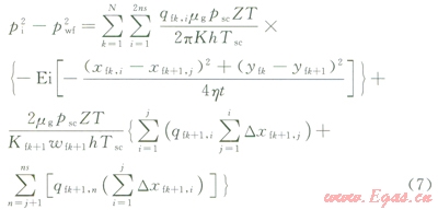 如果井底壓力(pwf)已知,聯(lián)立方程式(5)、(8)便可求得每個(gè)線匯的產(chǎn)量,根據(jù)式(9)就可求得總產(chǎn)量。