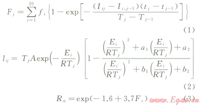 本次熱史模擬研究采用EASY%R。方法,所用化學(xué)動(dòng)力學(xué)模型由Sweeney和Burnham等人提出[25]: