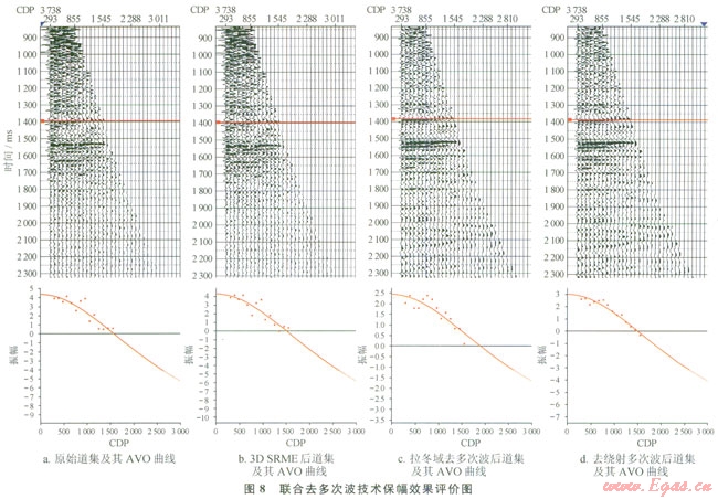 針對荔灣深水地區(qū)多次波發(fā)育特點(diǎn)開發(fā)的聯(lián)合去多次波技術(shù),將3D SRME技術(shù)、拉冬域去多次波技術(shù)和繞射多次波衰減技術(shù)組合到一起,多次波去除效果好,成果剖面保幅。該套技術(shù)應(yīng)用于荔灣深水地震資料處理,取得了較好的應(yīng)用效果,為荔灣深水氣田群的地震資料解釋、AV0分析和疊前反演提供了優(yōu)質(zhì)數(shù)據(jù)。