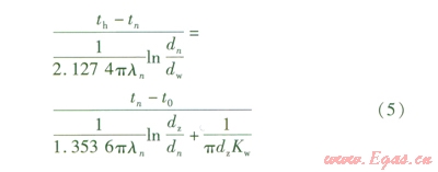 Kw——從絕熱層外表面至保護層外側(cè)空氣之間的傳熱系數(shù),W/(m2·K),為11.6 W/(m2·K)