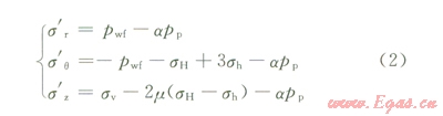 當(dāng)垂向力為最大主應(yīng)力、周向應(yīng)力為最小主應(yīng)力時(shí),井壁上的應(yīng)力狀態(tài)滿足: