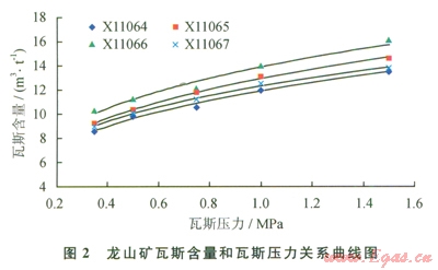 3)實驗室研究了瓦斯含量和瓦斯壓力的相互關(guān)系,龍山礦無煙煤瓦斯壓力0.74MPa對應(yīng)的瓦斯含量為l0.9~12.6m3/t,最低為l0.9m3/t;大眾礦貧煤對應(yīng)的瓦斯含量為9.04~10.7m3/t,最低為9.04m3/t。