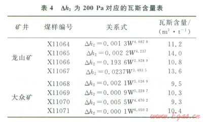 從表4可以看出,龍山礦無煙煤Dh2為200 Pa對應(yīng)的瓦斯含量為10.8~14.0m3/t,平均為l2.4m3/t;大眾礦貧煤對應(yīng)的瓦斯含量為9.3~10.4m3/t,平均為9.9m3/t。從實驗結(jié)果來看,龍山礦瓦斯含量在10.8m3/t就有百丁能具有突出危險性;而大眾礦瓦斯含量在9.3m3/t就可能發(fā)生突出。