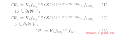 式中Kt為常數(shù),與溫度和腐蝕產(chǎn)物膜相關(guān);S為管壁切應(yīng)力,Pa;fCO2為CO2的逸度,bar;f(PH)t為pH值對(duì)腐蝕速率的影響因子。對(duì)于實(shí)際工況溫度下的腐蝕速率可通過(guò)在所測(cè)溫度及所規(guī)定溫度值問(wèn)作線性插值得到。Norsok M506腐蝕模型是以實(shí)驗(yàn)數(shù)據(jù)為基礎(chǔ)而建立的,對(duì)于腐蝕過(guò)程中化學(xué)及電化學(xué)反應(yīng)的熱力學(xué)及動(dòng)力學(xué)等機(jī)理考慮過(guò)少,可以用于預(yù)測(cè)材料的均勻腐蝕速率。