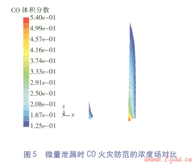 C0是CRG的主要叮燃組分,在12.5%~74.0%的爆炸極限范圍內(nèi)均可燃,且其密度與空氣相近,泄漏后較難快速散失,會混入地面空氣中產(chǎn)生橫向蔓延,因此研究考慮的C0防火控制體積分?jǐn)?shù)取其爆炸下限l2.5%,即低于該含量均屬安全。