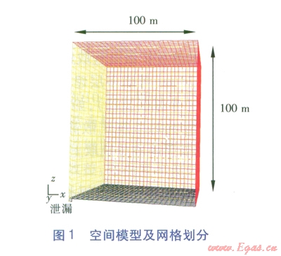 空間模型(見圖l)長200m、寬200m、高l00m,在200m×200m的平面中心設(shè)置1個(gè)2m×2m