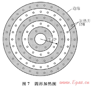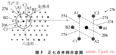 圖7為加熱井的另外一種陣列形式。在同心環(huán)形式的體積中,隨著環(huán)形體積向外移動其周長逐漸增大。所以間插加熱可減少外環(huán)體積的地層熱膨脹。