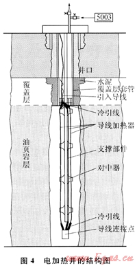引入導(dǎo)線將加熱元件耦聯(lián)到地層表面上。加熱元件耦聯(lián)到位于地層的底層上或附近的接觸元件。接觸元件耦聯(lián)到接觸部分中的接觸器上,以使支腿間彼此電氣耦聯(lián)以形成三元結(jié)構(gòu)。三元結(jié)構(gòu)耦聯(lián)到水平連接井。該加熱器的優(yōu)點是電氣耦聯(lián)多樣化,較易實施,缺點是直線排布三元結(jié)構(gòu)不利于加熱頁巖層。 2.2 電加熱井的設(shè)計