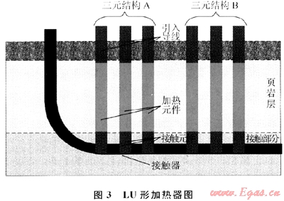 為了降低加熱器的成本,LU形加熱器沿直線方向布置3個加熱器(圖3)。