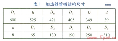 2.2 加熱器管板結(jié)構(gòu)尺寸