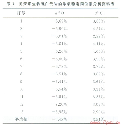 3.3 礁白云巖的碳氧穩(wěn)定同位素