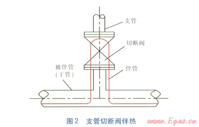 i.當(dāng)被伴管為干管,其支管不需伴熱時(shí),支管上的第一個(gè)切斷閥應(yīng)予以伴熱,見(jiàn)圖2。