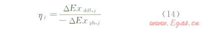 在第j層塔板能量轉(zhuǎn)化過程中,一部分物理能轉(zhuǎn)換為擴(kuò)散能,其余部分物理能為推動傳質(zhì)過程而被損耗掉。由第j層塔板能衡算式可得: