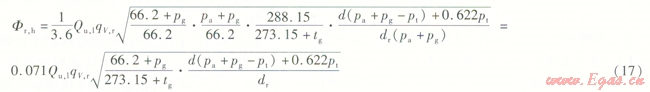 式中Fr,s——燃?xì)獠膳療崴疇t實測熱流量折算到海平面地區(qū)標(biāo)準(zhǔn)狀態(tài)下的熱流量,海平面地區(qū)標(biāo)準(zhǔn)狀態(tài)下的熱流量,Kw