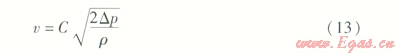 根據(jù)伯努利方程可計算燃?xì)獾牧魉?,由于實際測量中通常不能滿足理想的伯努利方程,故對其修正為[1]: