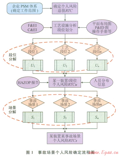 在獲得各工藝段位的個人風(fēng)險準(zhǔn)則RTCU之后,進(jìn)入圖1所示的第2階段的場景分解:根據(jù)HAZOP報告(或其他的工藝災(zāi)害分析PHA結(jié)果),以及設(shè)施的人員分布信息,由下式計算各事故單元的個人風(fēng)險準(zhǔn)則RTCS。即