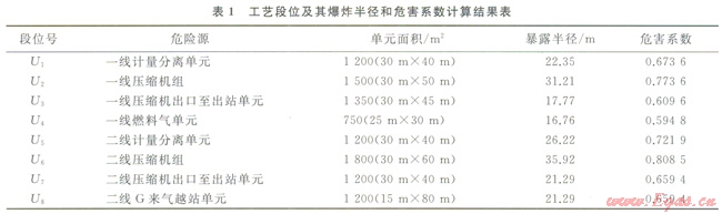 工藝段位(Section)的劃分,除了可以根據(jù)圖2中的各關(guān)斷位置之外,還可以根據(jù)工藝單元或者參考HAZOP報告的節(jié)點來劃分。本例的主要危害后果是天然氣泄漏之后的潛在火災(zāi)爆炸,因此根據(jù)道化F&E指數(shù)計算流程分別對各工藝段位進(jìn)行計算,結(jié)果如表1所示。