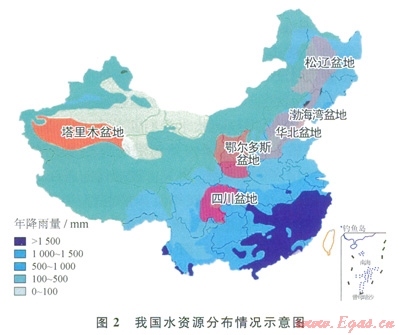 此外,在我國(guó)頁(yè)巖氣富集的山區(qū),地表?xiàng)l件較差,水資源匱乏,大規(guī)模水力壓裂造成的環(huán)境污染和資源浪費(fèi)等問(wèn)題也不容忽視,以美國(guó)2011年頁(yè)巖氣開發(fā)數(shù)據(jù)為例,根據(jù)美國(guó)能源部統(tǒng)計(jì),每一口頁(yè)巖氣鉆井平均用水量高達(dá)1.5×104m3[7]。預(yù)計(jì)全年頁(yè)巖氣水平井鉆井?dāng)?shù)為8000口,則一年的用水量至少為l.2×l08m3。我國(guó)是一個(gè)干旱缺水嚴(yán)重的國(guó)家,人均年可利用淡水資源量?jī)x為900m3,不到美國(guó)的l/5,并且分布極其不均,統(tǒng)計(jì)到20世紀(jì)末,全國(guó)600多座城市中,已有400多個(gè)城市存在供水不足問(wèn)題,其中比較嚴(yán)重的缺水城市達(dá)ll0個(gè),全國(guó)城市缺水總量為60×l08m3。如圖2所示,我國(guó)頁(yè)巖氣田的分布與缺水地區(qū)的分布重合較多。在水量相對(duì)充裕的長(zhǎng)江流域,只在四川[8]和江漢盆地發(fā)現(xiàn)了頁(yè)巖氣,而在西北、華北地區(qū)[9],頁(yè)巖氣儲(chǔ)量豐富,水資源卻相當(dāng)緊張[10]。與此同時(shí),35%的壓裂液將返排至地表,若處理不當(dāng)將給環(huán)境帶來(lái)巨大的污染,同時(shí)也增加了開發(fā)成本[11]。因此,我國(guó)頁(yè)巖氣資源的高效可持續(xù)開發(fā),不能單純借鑒北美大規(guī)模水力壓裂的生產(chǎn)模式,需要大力發(fā)展高效環(huán)保、低水量消耗的壓裂液體系以及配套的壓裂設(shè)備和技術(shù)方法。