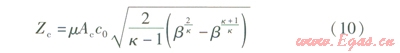 對亞臨界狀態(tài)b>bc,式(10)中b不是常量,因而Zc不是常量。對天然氣,bc=0.544,臨界壓力(絕對)為0.18MPa。近似認為輸氣管道天然氣泄漏始終保持臨界流動狀態(tài)。