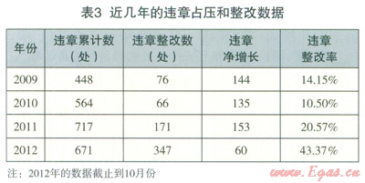 6家公司根據(jù)以上整理的各種措施和手段積極的推進(jìn)了違章壓占的整改和預(yù)防工作,做到了一案一卷,取得了初步的成效。見(jiàn)表3。