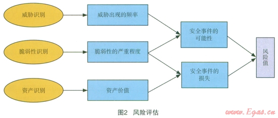 風(fēng)險評估的實施方法有許多,在做信息安全風(fēng)險評估時,應(yīng)從企業(yè)整體出發(fā),從企業(yè)需求出發(fā)。通過《信息安全技術(shù)信息安全風(fēng)險評估規(guī)范》(GB/T20984-2007)給出的風(fēng)險評估實施流程可以較為全面評估出企業(yè)存在的信息安全風(fēng)險。