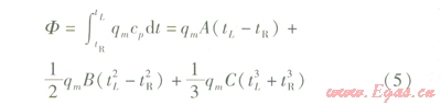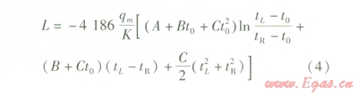 將式(3)等號(hào)左側(cè)在管長(zhǎng)0~L范圍進(jìn)行積分運(yùn)算,等號(hào)右側(cè)在溶液溫度tR~tL范圍進(jìn)行積分運(yùn)算,可得到: