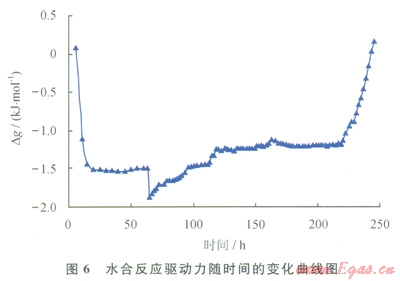 根據(jù)靜態(tài)條件下C3H8水合反應(yīng)過程的實驗數(shù)據(jù),通過Sloan等給出的氣液系統(tǒng)水合反應(yīng)驅(qū)動力公式,可計算得到吉布斯自由能變(Dg)表示的C3H8水合物的生成驅(qū)動力,如圖6所示。