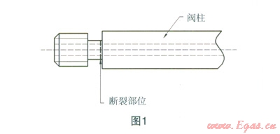 公司技術(shù)部門、施工管理部門會(huì)同施工方、設(shè)備廠家一起對(duì)調(diào)壓器進(jìn)行了拆解,經(jīng)過(guò)對(duì)兩臺(tái)調(diào)壓器進(jìn)行拆解,發(fā)現(xiàn)均為調(diào)壓器的閥桿斷裂,閥桿斷裂部位均在閥桿端部連接閥瓣的槽口處(見(jiàn)圖1)。