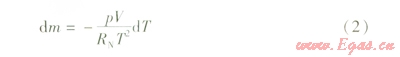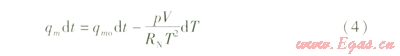 式(2)表示在壓力和體積不變的條件下,儲(chǔ)罐內(nèi)氣體溫度變化和質(zhì)量變化的關(guān)系。