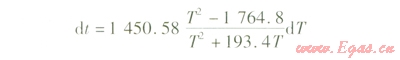 T=-1450.58[283-184.271n(T+193.4)-9.131nT]-1313543.7 (18)