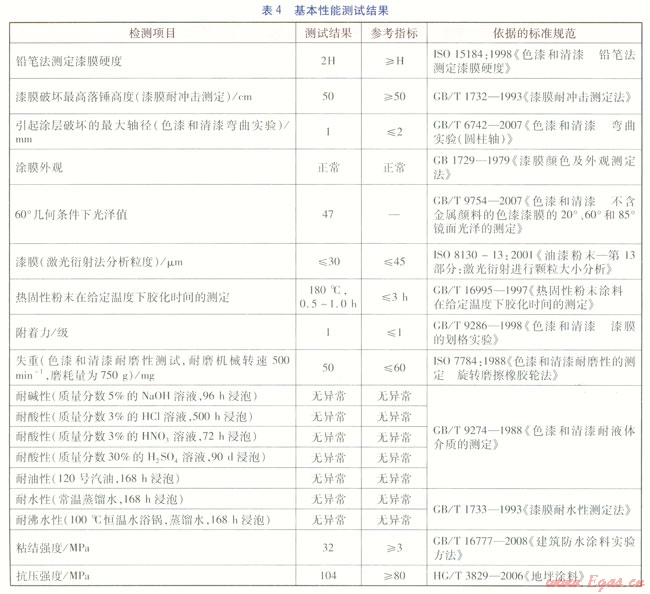 內(nèi)涂層基本性能測試結(jié)果見表4。由表4可知,涂層各項(xiàng)基本性能符合要求。