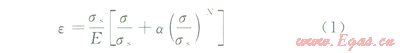 采用Ramberg-Osgood模型來描述管材的彈塑性特征,表達式如下: